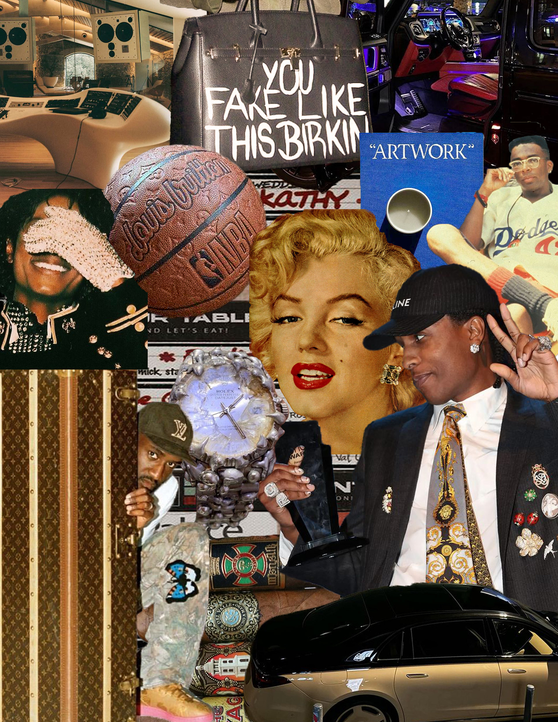 This moodboard was a project for my Garment Design & Construction course where I was asked to create a moodboard that effectively communicates a chosen theme/message that will later inspire a Haute Couture fashion collection. My chosen theme was the intersection of luxury and streetwear and the ironic and bold manipulation of iconic status symbols such as the Birkin bag, Louis Vuitton Trunk, and classic men's tuxedo.